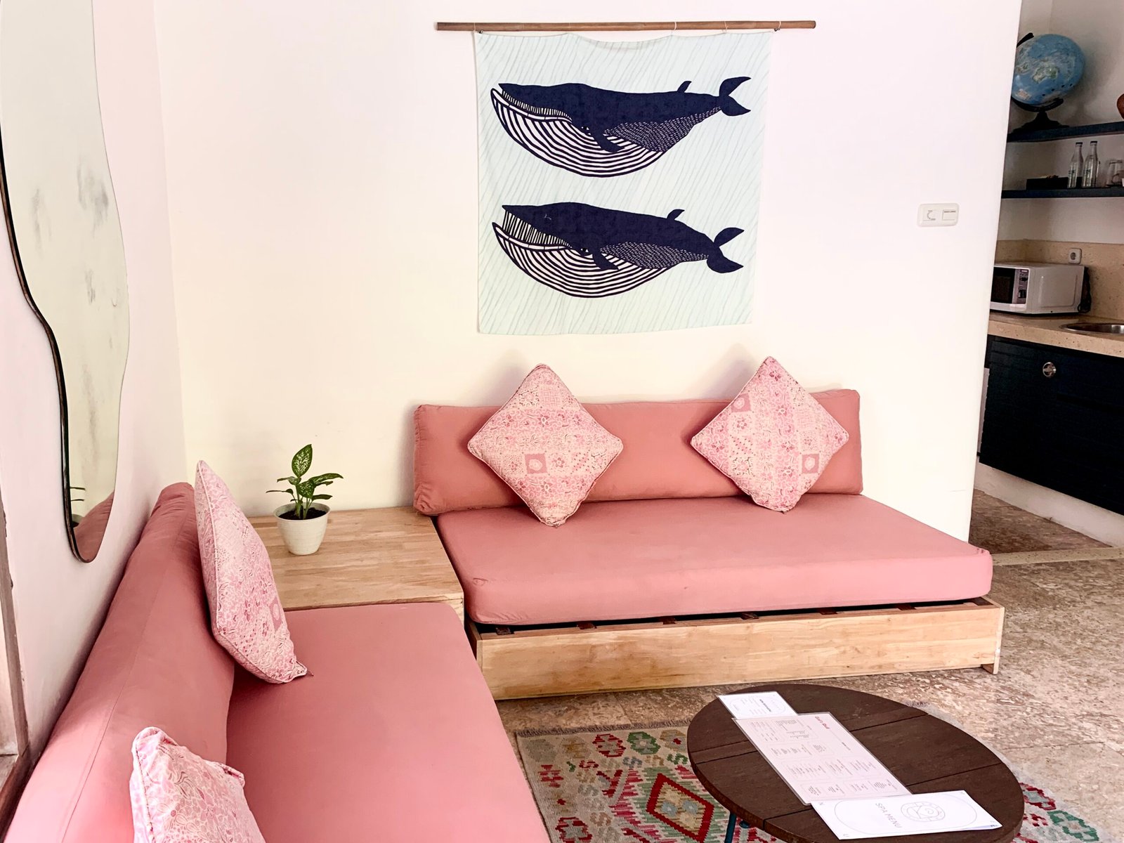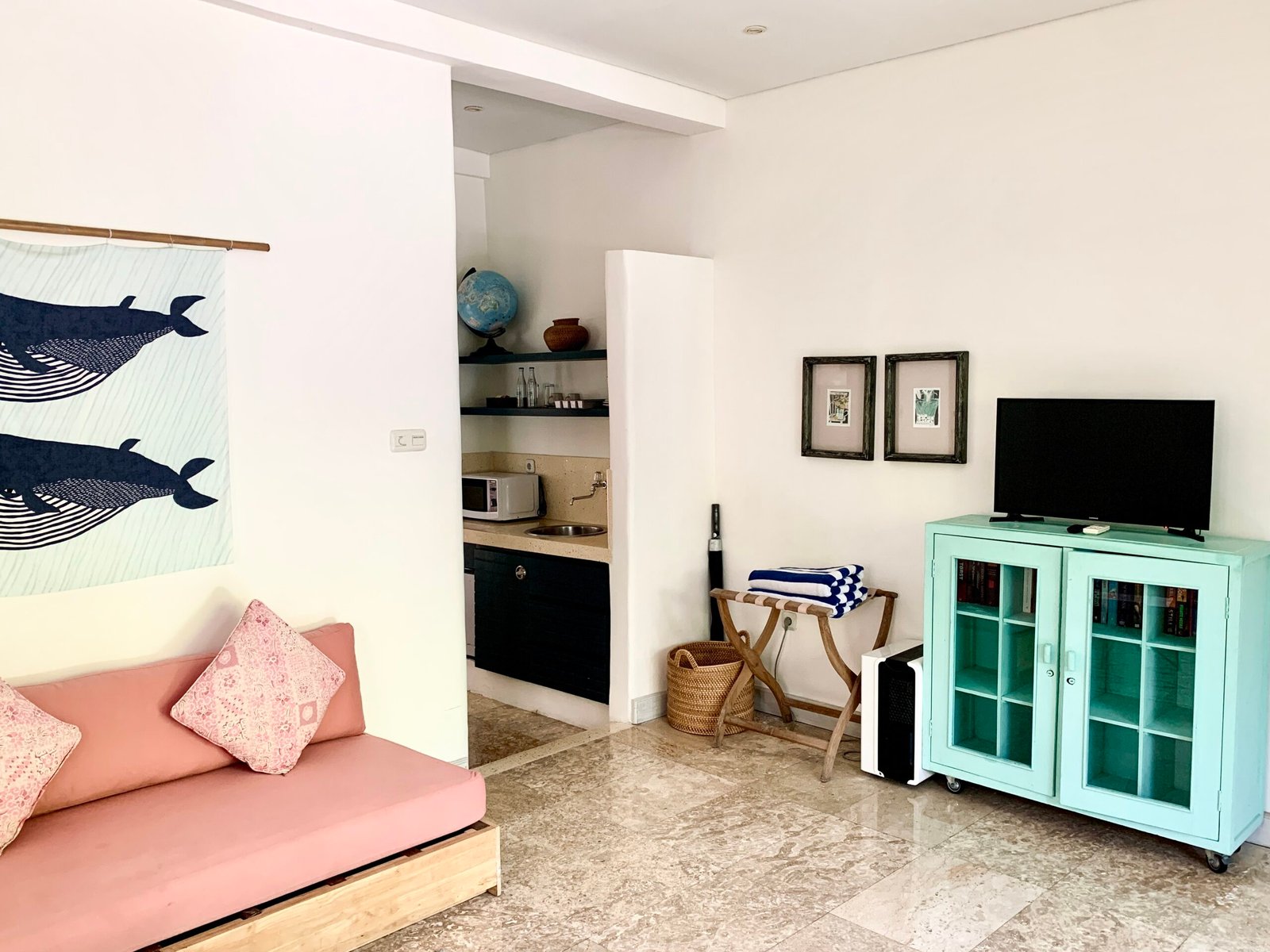 The apartment has is modern and cozy and is equipped with a king size bed room, a sitting area (2 futon than convert to bed as well) with an android TV, a bathroom and a kitchenette. Outside, the pool and ocean awaits!